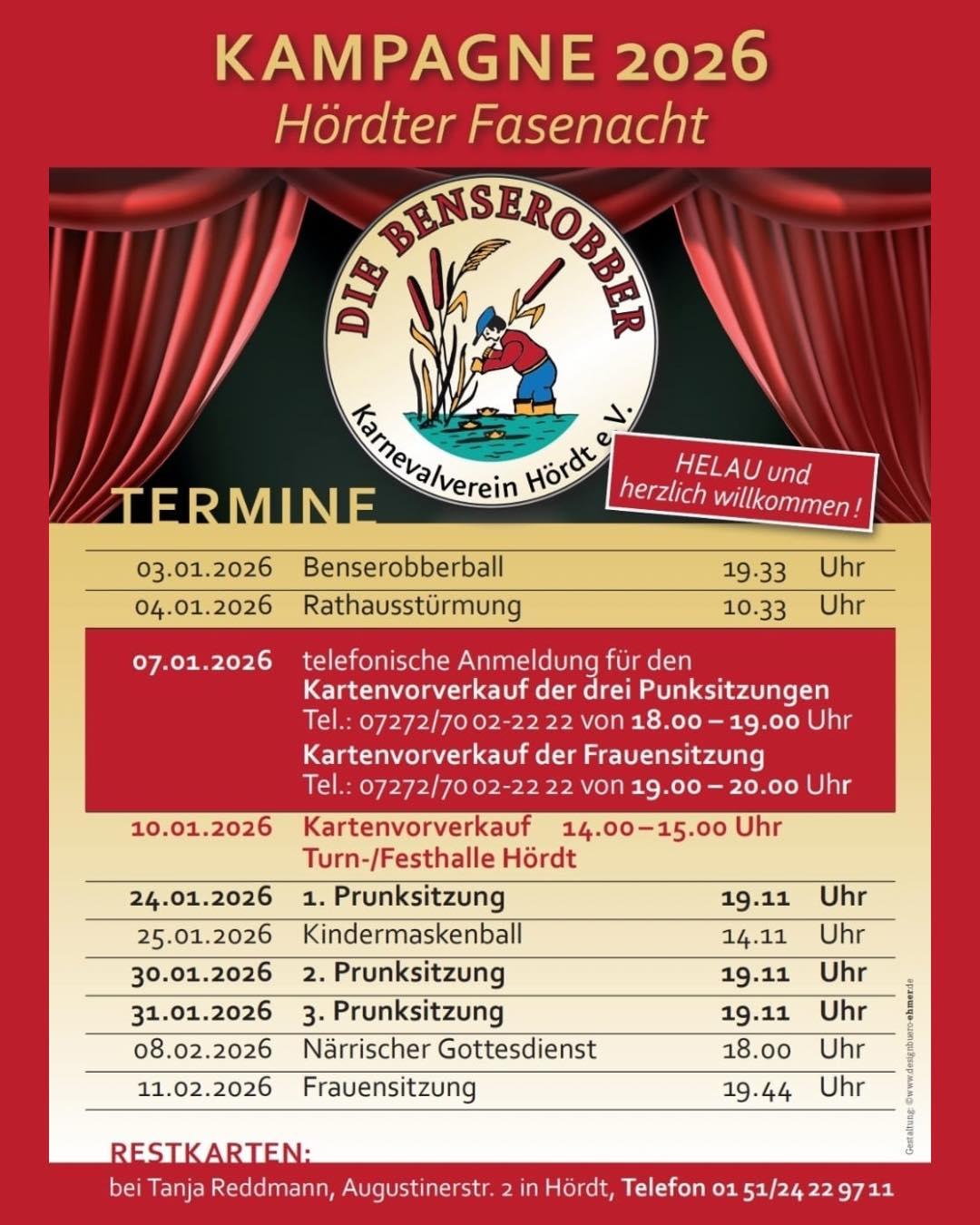 07.01.2026 18-19 Uhr - Kartenvorverkauf Prunksitzungen (Telefonaktion)